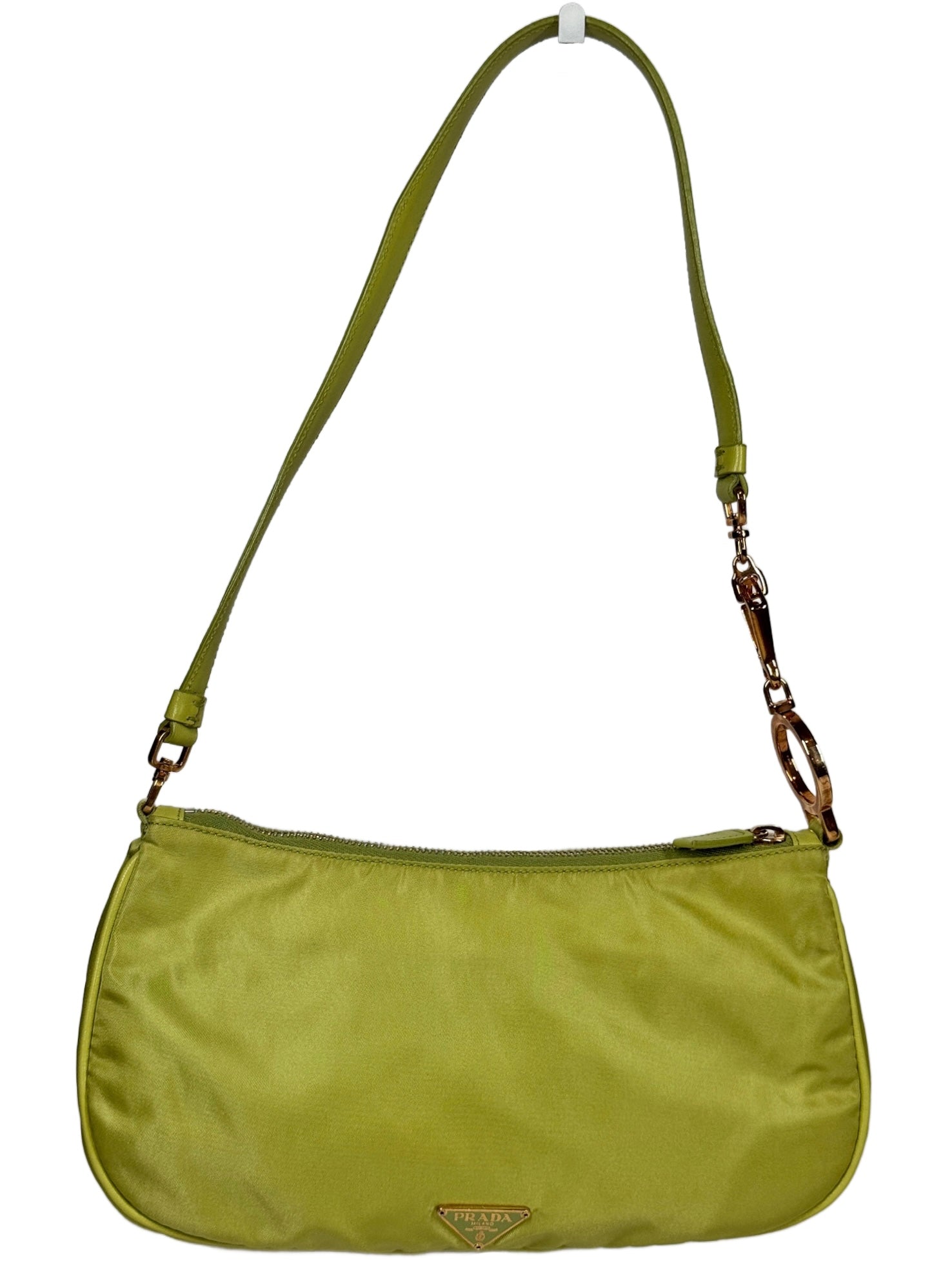 Prada Vintage Lime Green Tessuto Nylon Cleo Ring Shoulder Bag